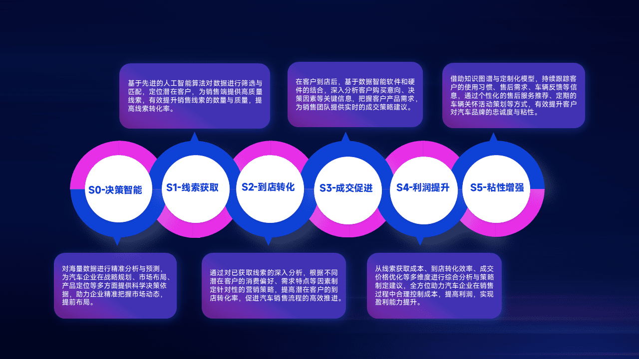 通过拓宽潜在客户来源、、优化线索分配并提高到店转化率,,,,以增强销售效率。。。。同时,,利用线索数据不断优化分析模型,,,有效提升转化率,,扩大营销影响力。。。
